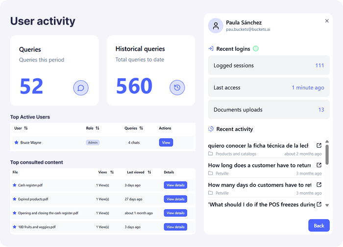 BucketsAi is live in hours, not days or months. Upload your documents, invite your team, and start answering questions right away.